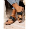 Black and White Striped Flat Sandals for Women – Casual Slip-On Summer Footwear with Braided Design – Comfortable Beach and Vacation Shoes 2025