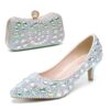 Women's Crystal-Embellished Kitten Heel Shoes and Matching Clutch Set - Elegant Rhinestone Wedding Pumps with Evening Bag 2025