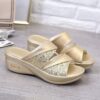 Women's Glitter Wedge Sandals - Gold Slip-On Platform Shoes with Comfortable Sole for Casual and Party Wear 2025