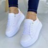 Women’s White Platform Sneakers with Gold Accents – Comfortable Lace-Up Casual Shoes for Everyday Wear 2025 $54.99